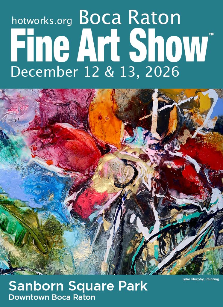The Boca Raton Fine Art Show features up to 125 nationally recognized artists. Located in downtown Boca at Sanborn Square Park, the show is surrounded by elegant boutiques and cafes. The Boca Raton Fine Art Show is consistently voted as one of the Top 100 Art Shows in America! Come for the great art, live music, fantastic food! Complimentary admission; donations accepted!