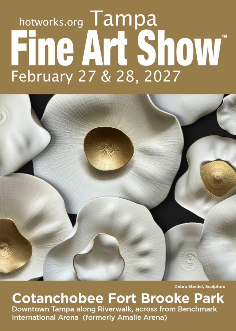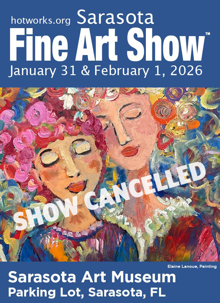 Hot Works’ Sarasota Fine Art Show is held outdoors at the Sarasota Art Museum, located in south Sarasota. The art show is held 100% outdoors in their parking lot, with high visibility from US-41/Tamiami Trail – and has plenty of close-by parking.