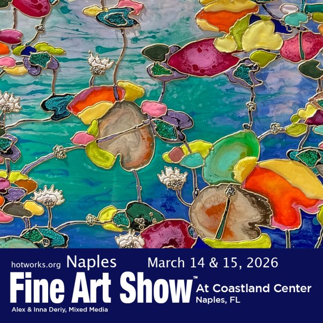 Produced by Patty Narozny, who brings more than 35 years of media and event expertise, the Naples Fine Art Show is built on integrity, professionalism, and a proven record of success. Each artist personally creates their work—no mass-produced or imported items are ever allowed—ensuring a unique, authentic experience for collectors and art lovers.