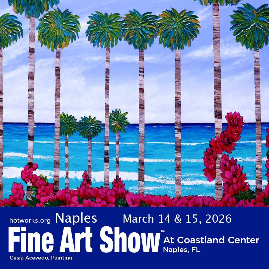 Produced by Patty Narozny, who brings more than 35 years of media and event expertise, the Naples Fine Art Show is built on integrity, professionalism, and a proven record of success. Each artist personally creates their work—no mass-produced or imported items are ever allowed—ensuring a unique, authentic experience for collectors and art lovers.
